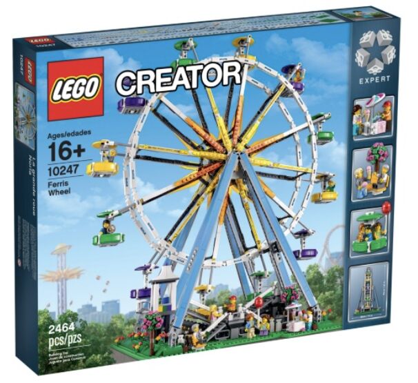 Neu & in versiegelter Box (Box hat leichte Schäden - Bilder auf Anfrage) Das LEGO® Creator Expert Modell hat eine ikonische Eleganz, die Gefühle von Nostalgie, Romantik und Abenteuer hervorruft. Der Jahrmarkt ist in die Stadt gekommen und der Eisverkäufer bedient eine lange Schlange aufgeregter Kunden, die auf ihre erste Fahrt mit dem magischen Riesenrad warten, das über dem Festplatz thront. Drehen Sie langsam an der Kurbel und beobachten Sie, wie das Riesenrad die bunten Gondeln anmutig in die Position zum Einsteigen bringt. Hebe die Einstiegsplattform mit einem einfachen Zug am Hebel an, öffne die Gondeltür und hilf den Passagieren an Bord! Viel Spaß beim Bau dieses eleganten Modells, das mit seinem authentischen Charme und Zauber die Fantasie beflügelt. Du kannst das Riesenrad auch mit dem LEGO Power Functions 8883 Medium-Motor und der 88000 AAA-Batteriebox (nicht enthalten) motorisieren. Enthält 10 Minifiguren: einen Fahrdienstleiter, einen Eisverkäufer, 4 Kinder und 4 Erwachsene. Enthält 10 Minifiguren mit verschiedenem Zubehör: ein Fahrgeschäftbetreiber, ein Eisverkäufer, 4 Kinder und 4 Erwachsene Mit einem Riesenrad-Kiosk, einem Eisstand, einer Bank und verschiedenen Blumen- und Baumelementen Riesenrad mit dekorativen Elementen, Rampen, Einstiegsplattform und 12 bunten Gondeln mit zu öffnenden Türen Zu den Zubehörelementen gehören eine Brezel, ein Luftballon, 2 Eistüten und eine Eisportionierer Enthält unglaubliche 2464 LEGO® Elemente Steig in das Riesenrad ein! Drehe die Kurbel und beobachte, wie sich das Riesenrad dreht Motorisiere das Riesenrad mit dem LEGO® Power Functions 8883 Medium-Motor und 88000 AAA-Batterien (nicht enthalten) Das Riesenrad ist über 60 cm (23") hoch, 55 cm (21") breit und 38 cm (14") tief