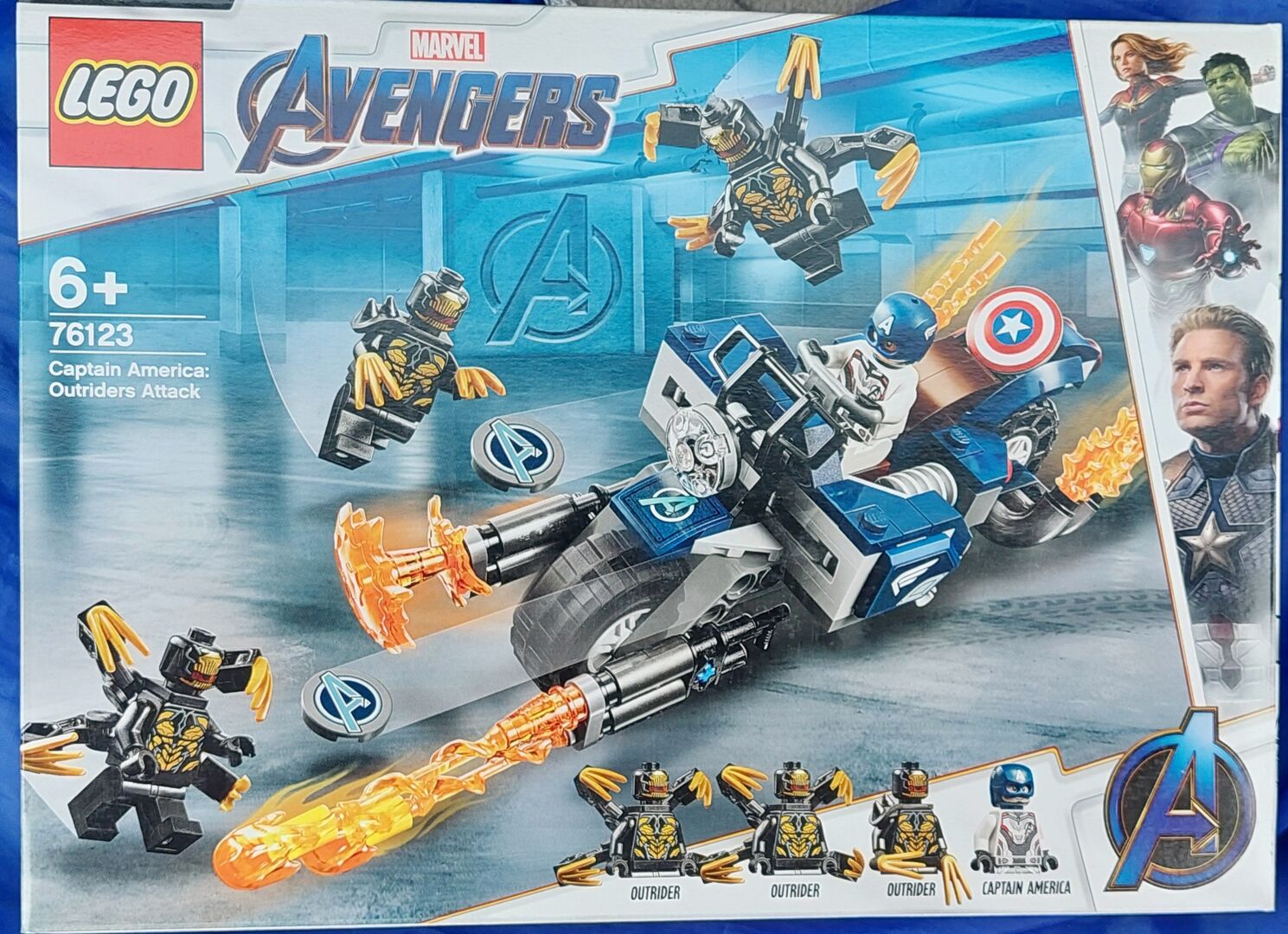 Dieses Set ist brandneu und wurde noch nie geöffnet. Dieses Set enthält ein baubares Captain America-Bike mit einem Minifiguren-Cockpit, 2 Captain America Shield Shootern, einem Vorderrad mit abnehmbaren, nicht schießenden Blastern, Befestigungspunkten für Minifiguren, einem klappbaren Fahrradständer, einem Scheinwerferelement und einem Auspuff-Flammenelement. Das Set enthält außerdem 4 Minifiguren aus dem Marvel-Universum: Captain America und 3 Outriders.
