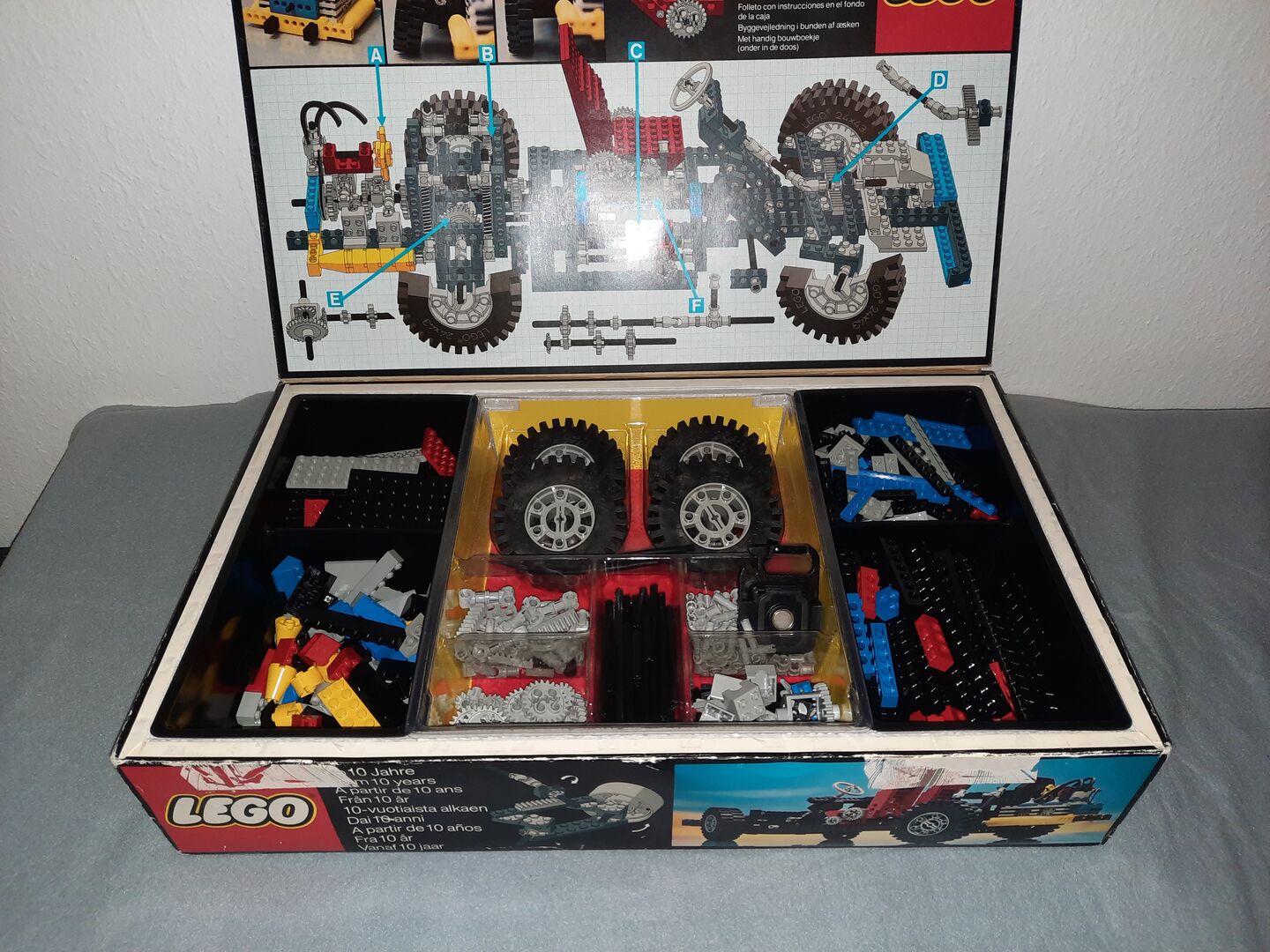 Steine komplett, sehr guter Zustand, gewaschen. Bilder zeigen die zusammengebauten Modelle (April 2025); Verkauf erfolgt in zerlegtem Zustand. Inklusive Anleitung und Box, beides mit altersüblichen Gebrauchssspuren.