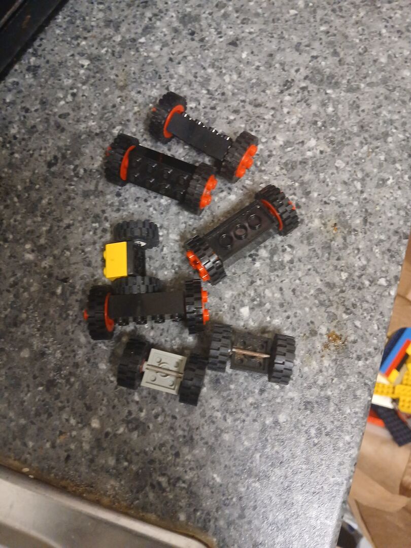 Ein Sortiment von lego bits Räder, Menschen, Batteriepacks, Elektronik technische Teile