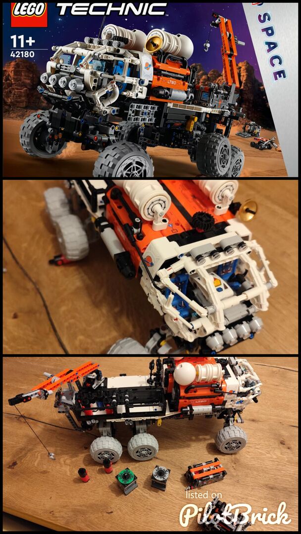 Der LEGO Technic Mars Exploration Rover (42180) ist ein Spielset für Jungen und Mädchen ab 11 Jahren, die Raumfahrtspielzeug lieben. Mit dem Modell kann dein Kind viel Wissenswertes über Marsmissionen lernen. Junge Forscher werden an dem detailgetreuen Spielzeug-Marsrover jede Menge authentische Funktionen entdecken. Zieht man das Modell auseinander, kommt die Ladefläche zum Vorschein. Wenn dein Kind das Fahrzeug dann in die richtige Position manövriert, kann es auch gleich die Federung testen. Mit dem Kran lassen sich der Rover-Roboter, Werkzeuge und der Brennstoffreaktor hochhieven. In der Kabine der Crew befinden sich Sitze, eine Dusche, eine Toilette, ein Laufband und ein Kühlschrank. Ausserdem gibt es eine Aufzugfunktion, Behälter für Gesteinsproben, Gasflaschen und Wasserkanister. Zu dem Set gehört auch eine spezielle Luftschleuse, damit Kinder das Modell für weitere Abenteuer an andere kompatible LEGO Raumfahrt-Sets andocken lassen können. Die LEGO Builder App bietet Kindern ein intuitives Bauabenteuer. In der App kann dein Kind 3D-Ansichten der Modelle vergrössern und drehen, Sets speichern und seinen Baufortschritt verfolgen. Vollständig ausgezogen ist das Mars Exploration Rover Modell 23 cm hoch, 44 cm lang und 21 cm tief. Enthält 1599 Teile.