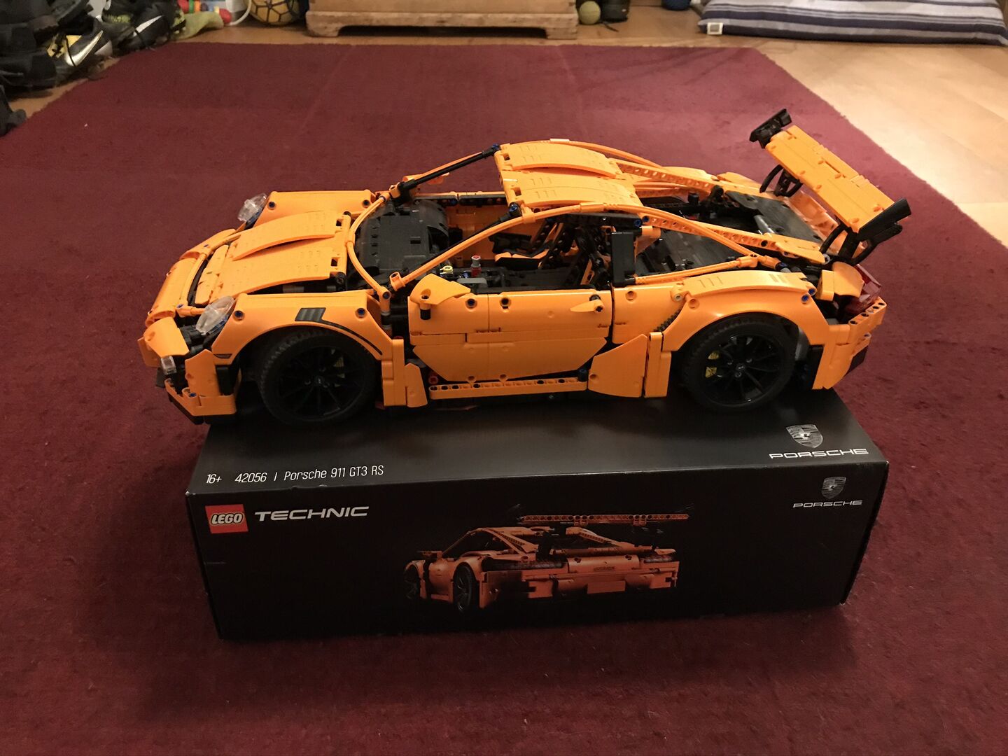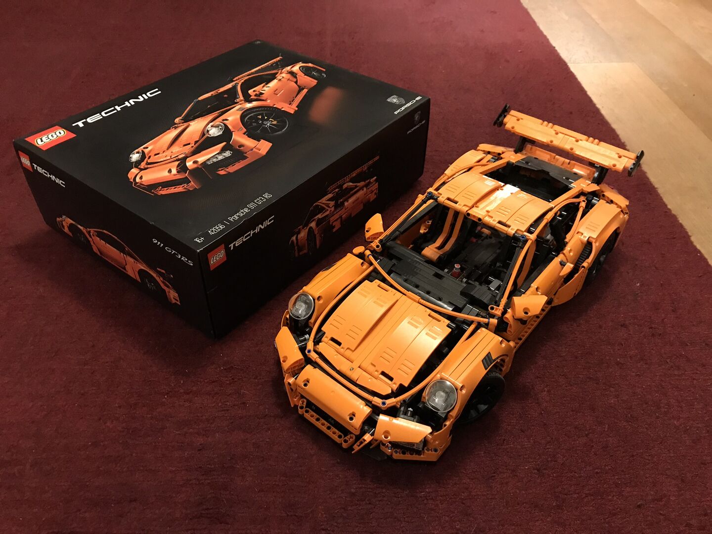 Technic Lego Porche 911 gt3 rs, gebrauchtes Set nur einmal gebaut und in gutem Zustand. Alle Stücke wieder in der Box. Leichte Marke auf der Oberseite der Box.