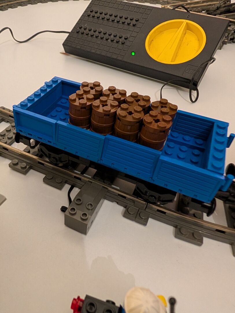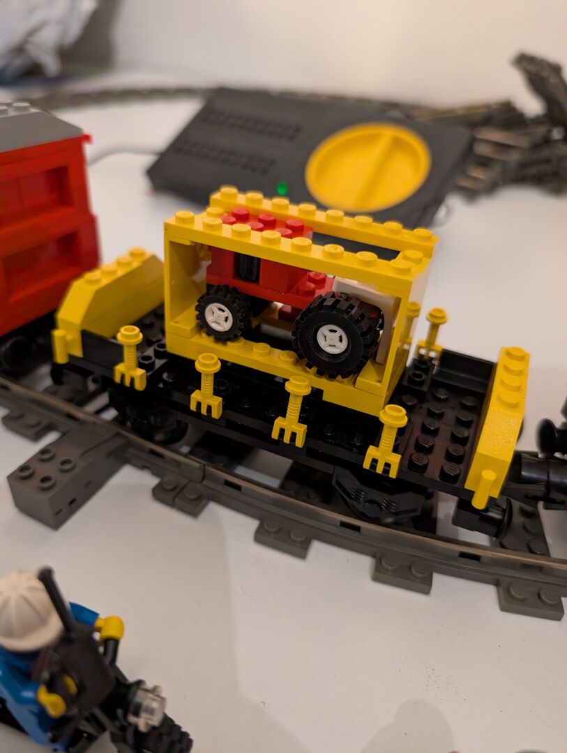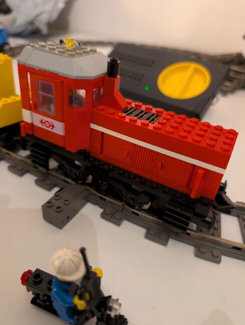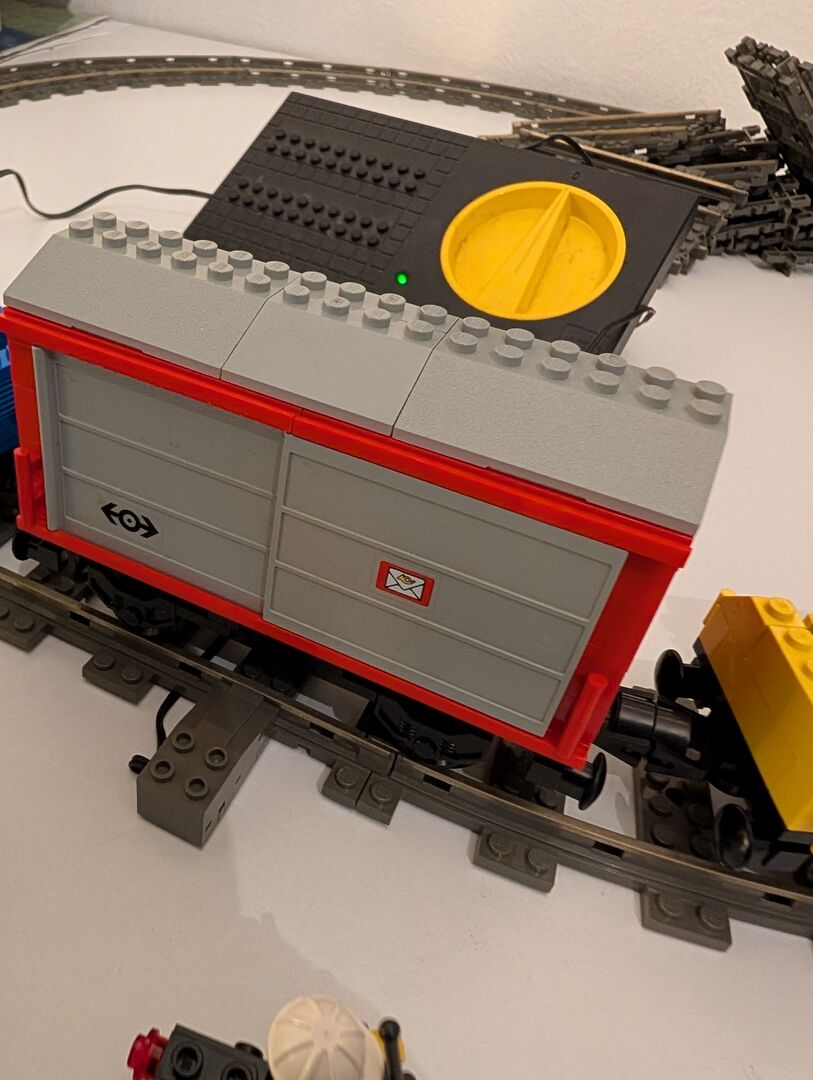 Load N' Haul Railroad mit ca. 450 Teilen und 3 Minifiguren von 1991 Das Set ist fast vollständig. Tatsächlich ist mir eine Kurve verschwunden. Ich kann aber als Ersatz oder je nach Angebot bis zu 16 Geraden anbieten oder die Kurve noch besorgen (was dann etwas mehr Zeit benötigt).